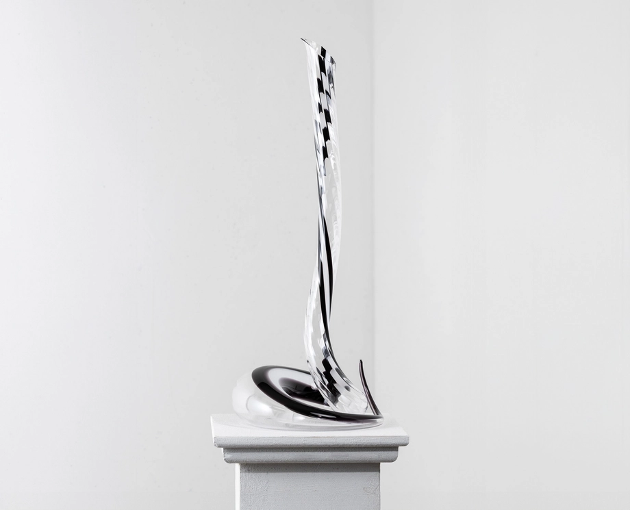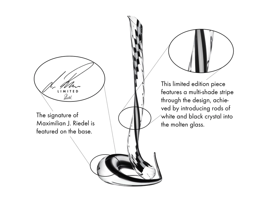 יצירה במהדורה מוגבלת זו מציגה פס בצבעים מרובים לאורך העיצוב, המושג על ידי הכנסת מוטות קריסטל שחורים ולבנים לזכוכית הנוזלית לפני עיצוב הדקנטר.